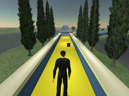 I helped make two orientations, one for people who registered on the Second Health website, and one for people who registered on the SciLands website. If you registered at the Second Health website, your new avatar would appear in SL on an island in the sim named UK Virtual Hospital. You would follow a path and read signs along the way to learn how to use Second Life. I terraformed that sim, planted the plants, built the path, and made most of the signs.